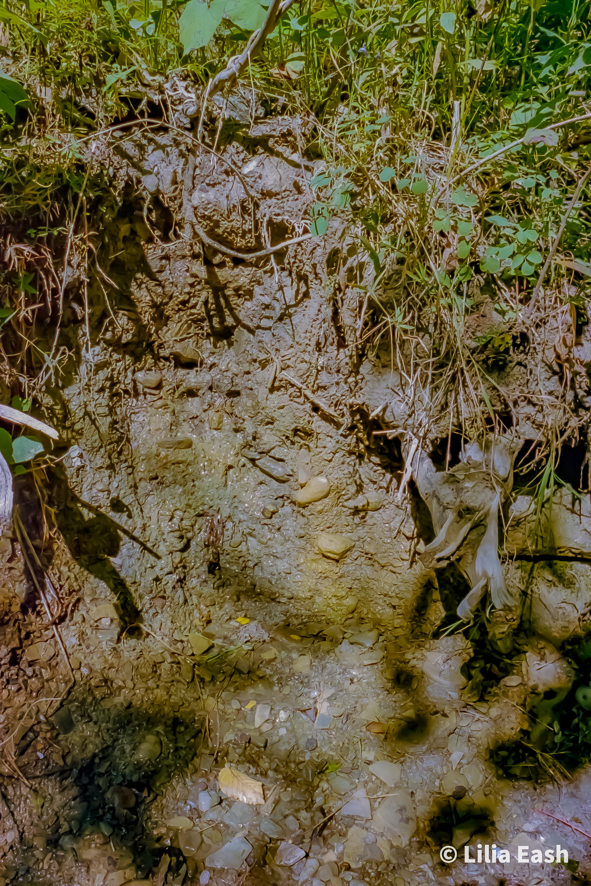 While some may see this as a small mud pit, we couldn't help but appreciate the shadows that the leaves left and were able to see the beauty in what would otherwise be viewed as disgust.